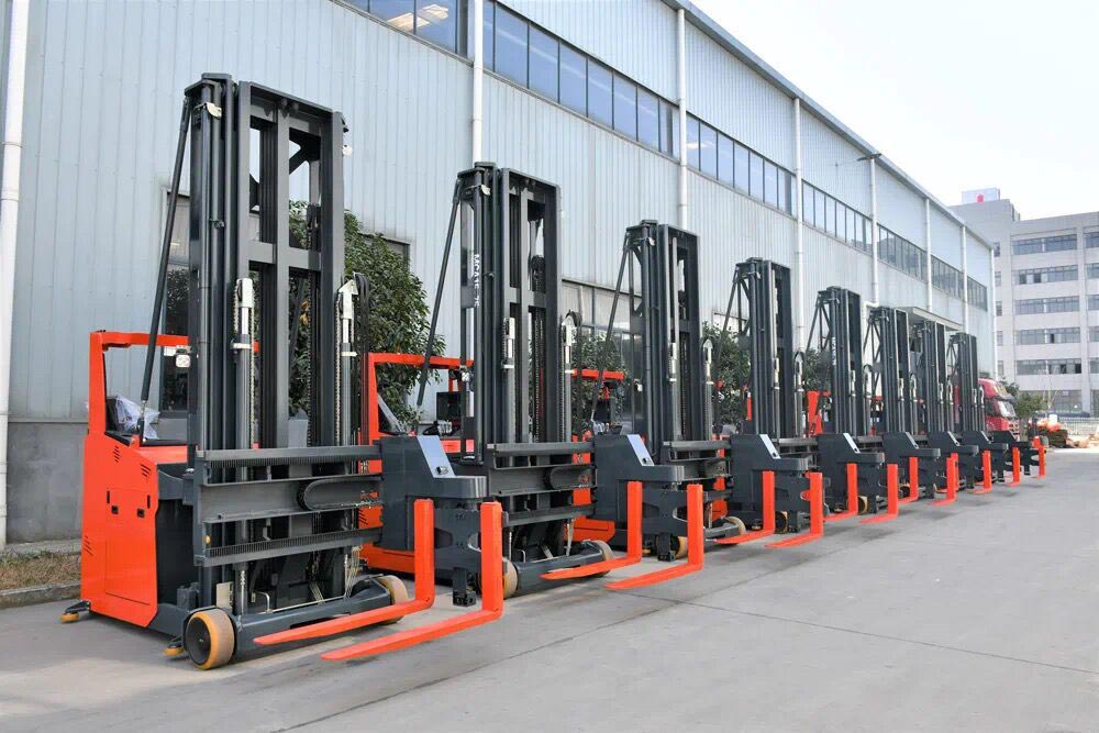 Der 3-Wege-Elektro-Palettenstapler ist derzeit in die MC/MCA-Serie mit Personenbedienung und die MCC-Serie mit Personenbedienung unterteilt, wobei MCA zu den elektrischen Dreiwege-Hochhubwagen gehört, die von Personen bedient werden. Der Traglastbereich der MC-Serie beträgt 1 bis 1,5 Tonnen, die maximale Hubhöhe beträgt 9 Meter, die wichtigsten Hydraulikkomponenten sind mit Importmarken ausgestattet, das Portal ist aus H-förmigem U-Stahl und einer zentralen Führungsschiene gefertigt und das Stapeln in großer Höhe ist stabiler und genauer. Der minimale Netto-Stapelgang des gesamten Fahrzeugs beträgt nur 1600 mm, was die Lagerkapazität erheblich erhöht. Das drahtlose Videoassistenzsystem der Gabel verbessert das Sichtfeld und ermöglicht eine effiziente und schnelle Bedienung. Radanzeigefunktion, Echtzeitanzeige des Drehwinkels des Antriebsrads, leicht zu erlernen für Anfänger. Die MCC-Serie ist der neu entwickelte elektrische Dreiwege-Hochhubwagen mit einer Nennlast von 1,6 Tonnen. Das Stapeln und Be- und Entladen von Gütern auf beiden Seiten der Fahrbahn erfolgt durch eine 180°-Drehung der Gabel und eine Verschiebung nach links und rechts. Die Kabine lässt sich für Kommissioniervorgänge in großer Höhe anheben. Das Fahrzeug verfügt über zwei Betriebsarten: Stehen und Fahren mit guter Sicht und erweiterten Funktionen. Drei Notausstiegsmöglichkeiten ermöglichen dem Fahrer im Notfall das Verlassen des Fahrzeugs, wenn es ungewöhnlich hoch geparkt ist. Die optionale Laser-Hindernisvermeidungsfunktion erkennt Fremdkörper vor und hinter dem Fahrzeug auf der Fahrbahn, um Kollisionen zu vermeiden und die Sicherheit zu erhöhen.